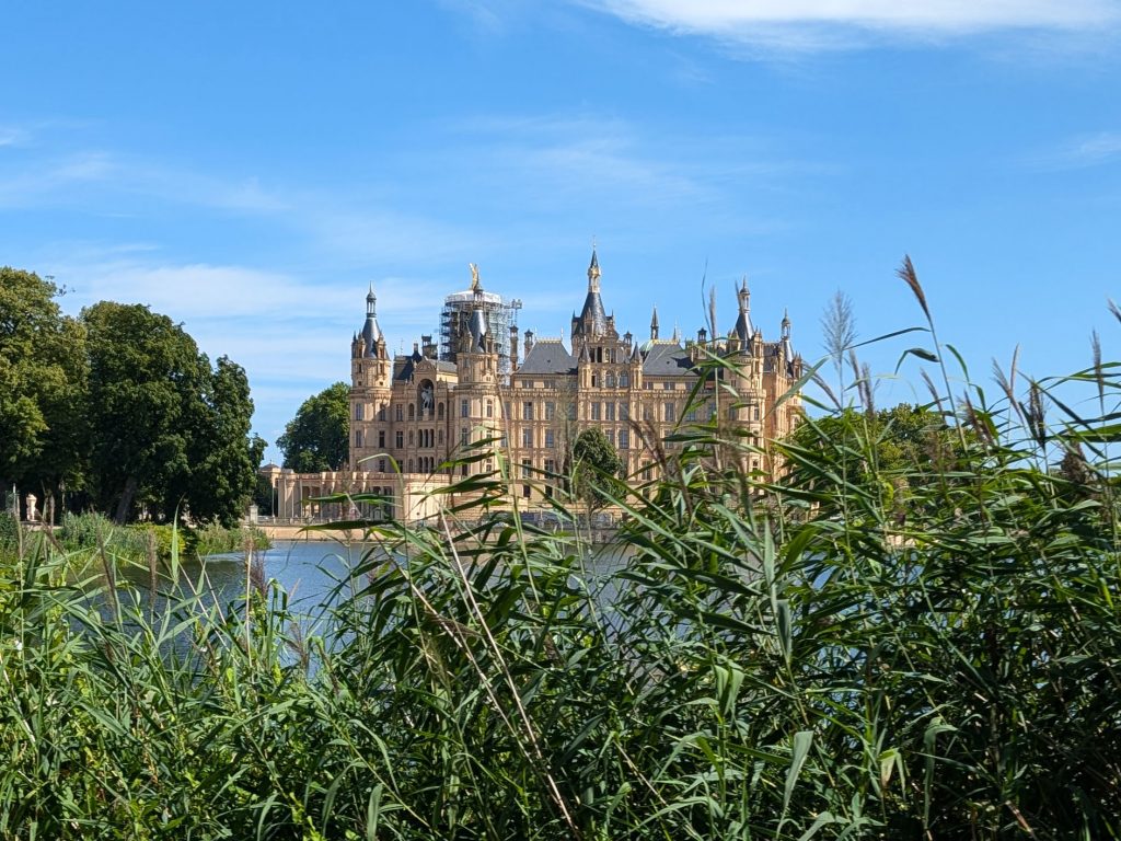 Da fiel mir auf, wir haben noch gar kein Bild vom Schloss! Das gehört in Schwerin ja wohl dazu. Also während der Fahrt das Handy raus und Foto gemacht.