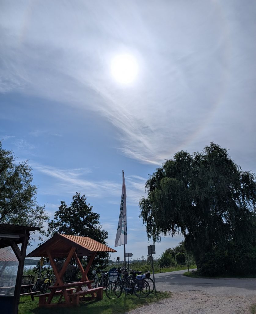 Auf dem Radcomputer standen nun schon 79 km. Also mussten wir wohl bald rum sein. Nun begleitete uns der See auch wieder und schon waren wir wieder in der Stadt und bei Klaus-Dieters Garten angekommen.