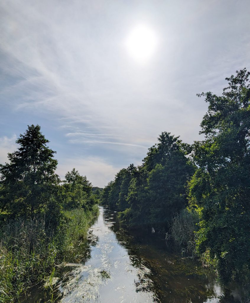 Dann kamen wir zur Warnow. Vor Zaschendorf gab es wieder einen Anstieg mit anschließender Abfahrt. Da ich den Berg als Erster erklomm und es bei der Abfahrt nur habe rollen lassen, bin ich doch tatsächlich zu weit gefahren. Irgendwie habe ich die Brücke nicht wirklich wahrgenommen. Aber ich drehte um und es war wieder Zeit für Fotos!